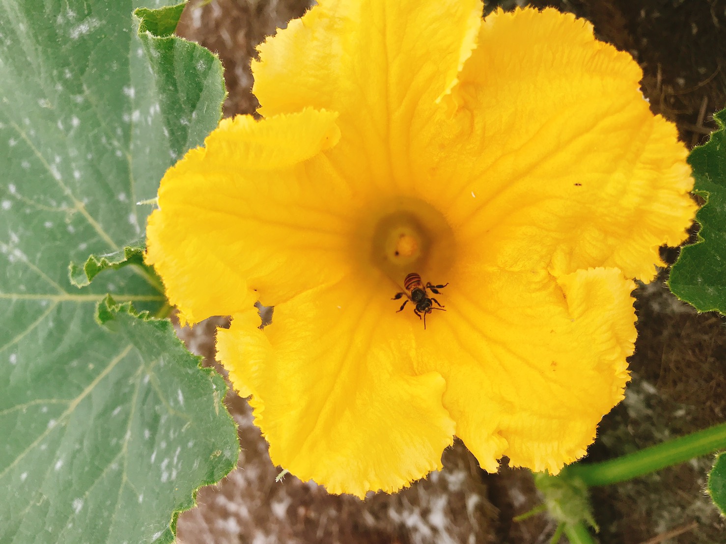 南瓜最怕瓜果實蠅叮咬,蟲類鳥類老鼠等生物啃食,需要人工套袋,細心呵護,被偷咬一口容易造成整個南瓜壞掉,賣相也不好。感恩農場內,生態環境非常好,除了蜜蜂授粉外,早上6:00人工授粉,提高南瓜結果率,授粉完經由套袋,保護南瓜好好生長,讓它又大又壯。