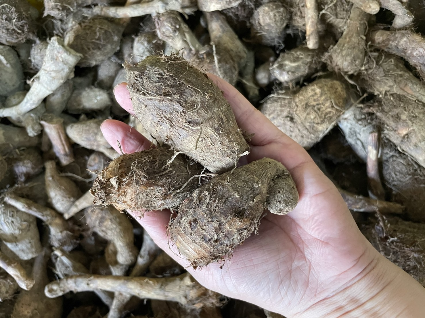 感恩農場的芋頭品種是檳榔心山芋,因為沒有噴灑農藥,所以芋頭並不好看,但不影響其鬆軟綿密的美妙口感!