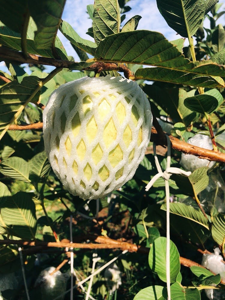 感恩農場人工套袋和透過剪枝,保持通風來管理防治蟲,