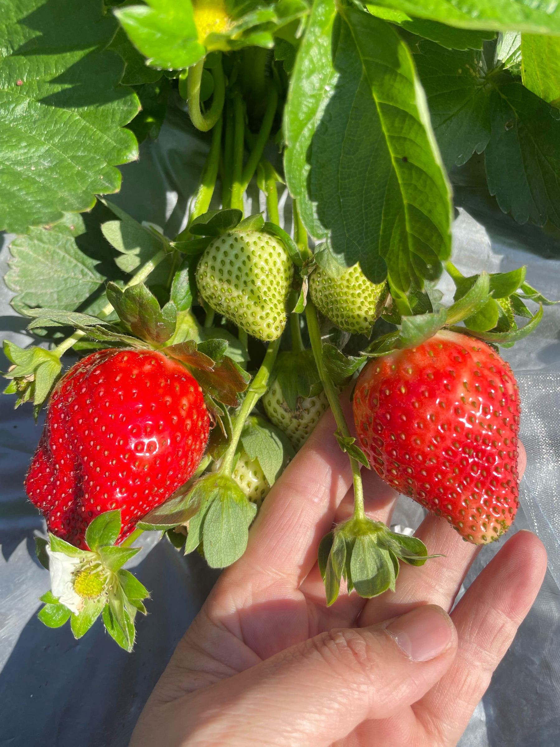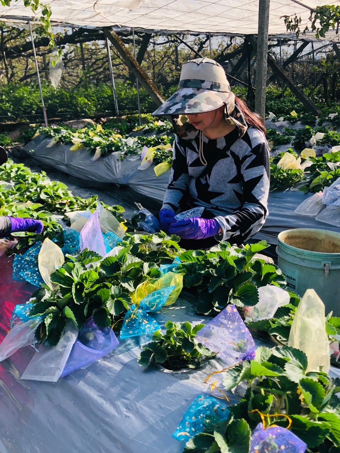 感恩農場草莓,完全不噴灑農藥,1顆1顆用紗網袋包,防止蟲害鳥害,非常耗費人工,所以種植數量不多,希望可以種出有機健康的草莓。